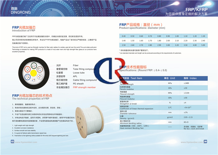Het Aramidfrp (KFRP of AFRP) centrale lid is een nieuw soort niet-metalen sterktelid voor vezel optische kabels.